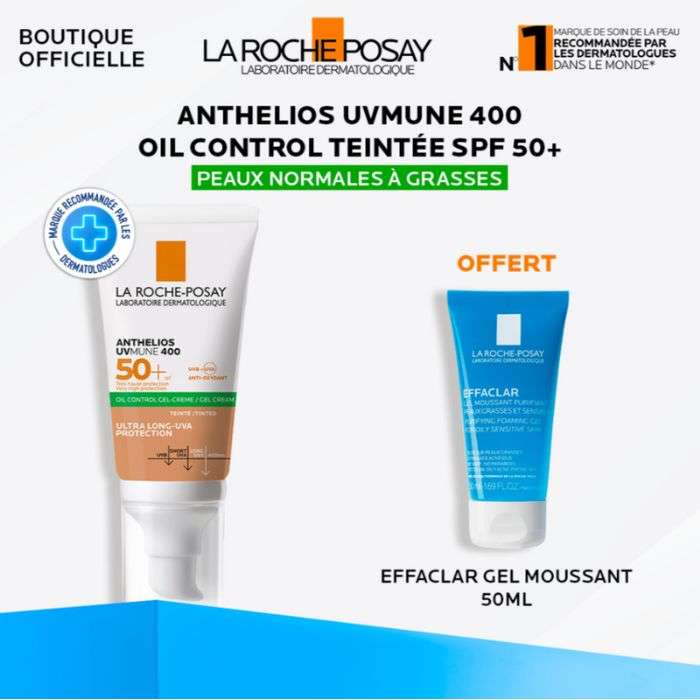 LA ROCHE POSAY OFFRE ANTHELIOS UVMUNE 400 GEL CREME OIL CONTROL TEINTE SPF 50 + GEL MOUSSANT 50ML OFFERT